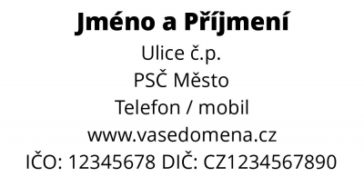 Nemáte vlastní návrh? Nevadí! Zdarma vám nabídneme naše online šablony razítek – stačí jen doplnit požadované údaje. Ušetřete za grafika!